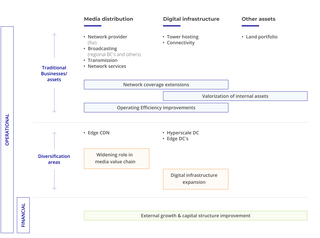 Strategy https://staging.raiway-virtual.redturtle.it/api/en/investors/strategy https://staging.raiway-virtual.redturtle.it/api/logo.png Strategy Targets EN.png Industrial plan pillars.jpg Capital allocation.jpg Grafico Inv 2.png Ricavi+EBIT 2.png