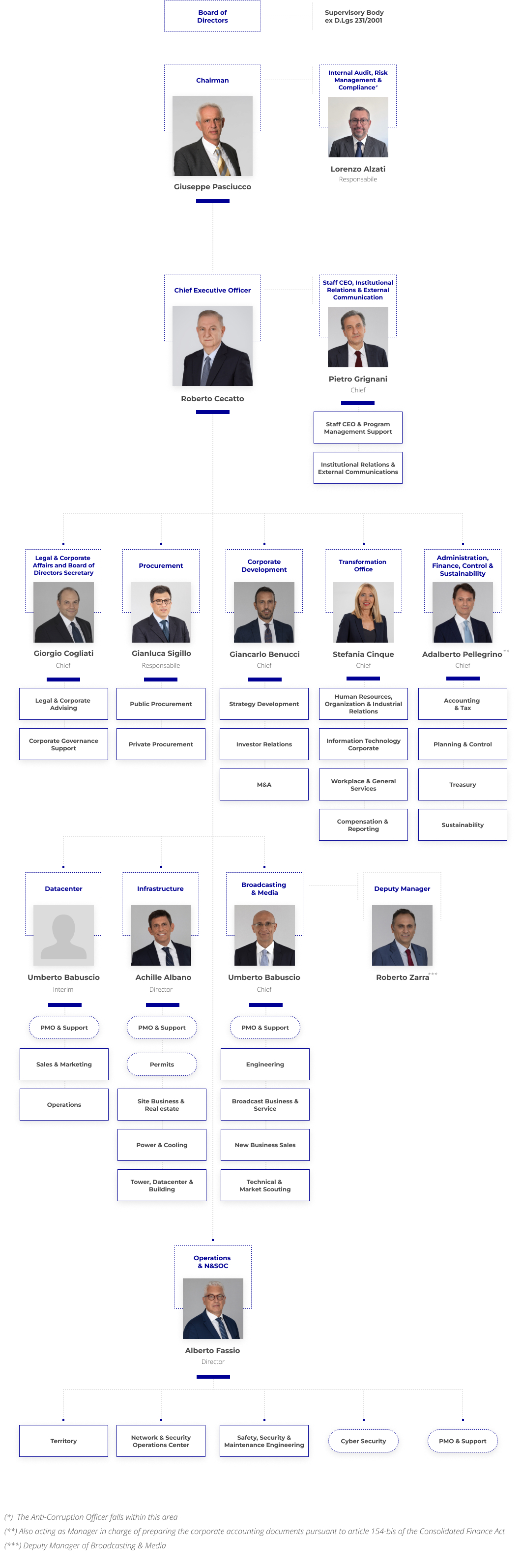 Rai Way relies on a management team with solid expertise and an in-depth understanding of the business, overseeing the development and execution of the company’s Industrial Plan.