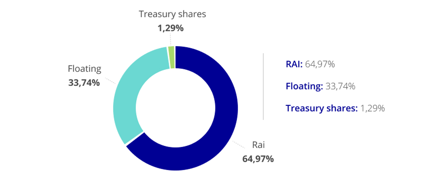 Figures as of 30/04/2025, rounded of the nearest integer. Floating includes shareholdings of less than 5%.