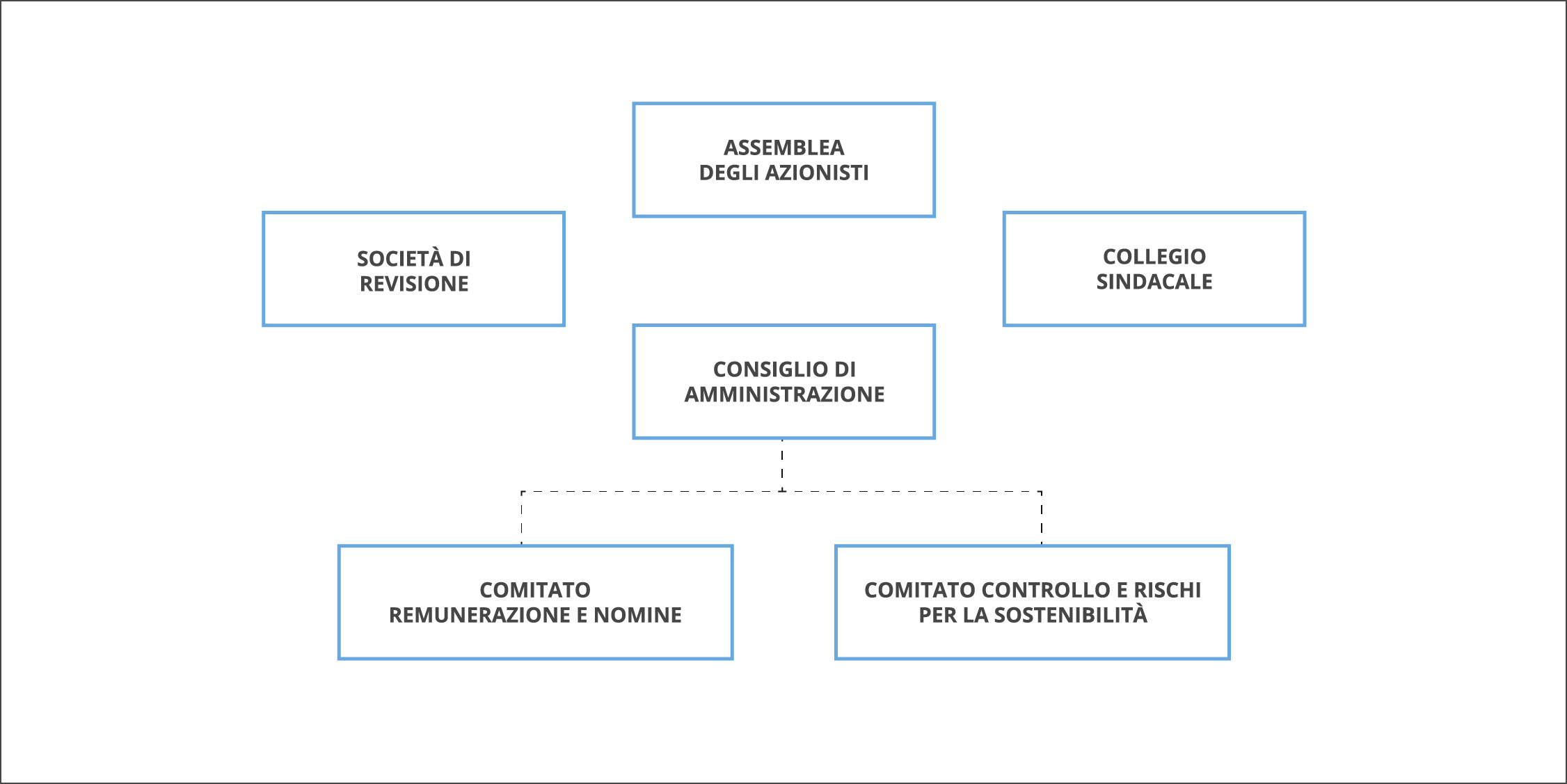 Rai Way adotta un sistema di Governance tradizionale che si fonda su un Consiglio di Amministrazione, quale organo gestorio, e un Collegio sindacale con funzione di controllo.